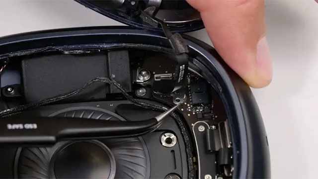 Эксперты отмечают, что AirPods Max второго поколения разбираются достаточно сложно. Больше всего проблем создает клей, с помощью которого крепятся элементы в чашках наушников. Несмотря на то, что купертиновцы постарались сделать внутреннюю конструкцию устройства модульной, отдельные элементы снять и заменить очень непросто. Например, для замены разъема USB-C наушники нужно разобрать практически полностью.