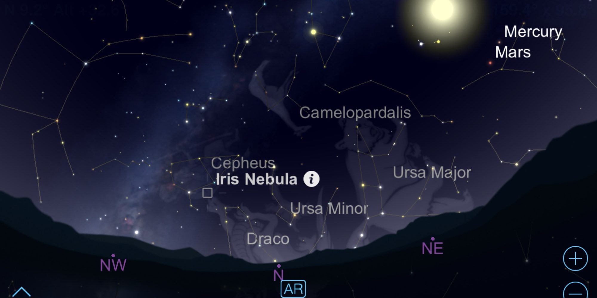 - Ищите конкретные объекты, вроде созвездий, планет и спутников.