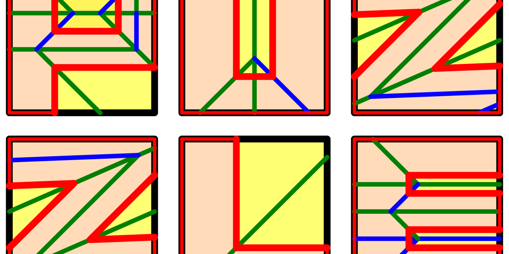 Демейн начали эту экспериментальную подборку шрифтов-головоломок на рубеже веков. с головоломкой рассечения — головоломкой, при которой одна фигура или многоугольник разрезается и снова собирается в другие геометрические формы. Их мотивацией была проблема, поставленная в 1964 году Гарри Линдгреном, британско-австралийским инженером и математиком-любителем: можно ли каждую букву алфавита разрезать на части, которые перестраиваются в квадрат?