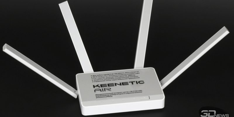 Keenetic Air довольно компактен и мало весит (159 ×110 × 29 мм, 240 г), может крепиться к стене, имеет четыре поворотных антенны и два радиомодуля 2 × 2 для диапазонов 2,4 и 5 ГГц (300 и 867 Мбит/с соответственно), оснащён четырьмя сетевыми портами 100 Мбит/с и поставляется с маленьким блоком питания мощностью 7,65 Вт. Внутри у него SoC MediaTek MT7628N в паре с модулем MT7612, которые обеспечивают поддержку 802.11b/g/n/ac. По производительности он аналогичен прошлому поколению Air. Но самое главное — на корпусе у него есть аппаратный переключатель режимов работы. Поэтому, в отличие от других устройств, для перевода Air в режим точки доступа, который и нужен для работы в составе Wi-Fi-системы Keenetic, не надо лезть в веб-интерфейс, менять настройки и ждать перезагрузки — достаточно перед подключением питания просто сдвинуть рычажок переключателя в нужное положение и присоединить ethernet-кабель от контроллера системы. Особых требований к модели Keenetic, выбранной на роль контроллера, в общем-то, нет. Понятно, что если у вас уже есть несколько роутеров компании, то лучше, пожалуй, выбрать основным тот, который побыстрее хотя бы в части ethernet-портов, но это необязательно.