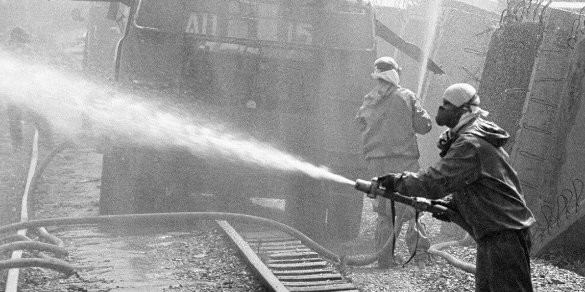Рабочие проводят ликвидацию ЧАЭС