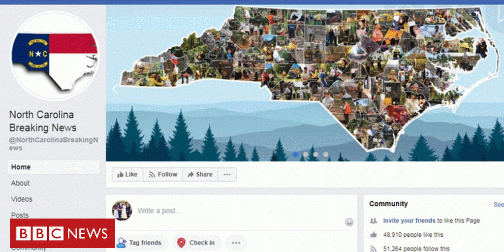 Страница Facebook, которая, кажется, делится местными новостями в Северной Каролине, является примером учебника по дезинформации, сообщают BBC News.