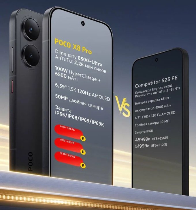 Работает POCO X8 Pro под управлением Android 16 с оболочкой HyperOS 3.0, используется быстрая оперативная память LPDDR5X и накопители UFS 4.1. Среди дополнительных возможностей — Wi‑Fi 6, Bluetooth 6, NFC, стереодинамики с поддержкой Dolby Atmos и подэкранный сканер отпечатков пальцев.