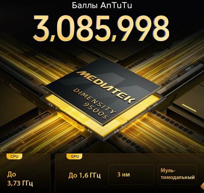 Старшая модель смартфона получила еще больший экран диагональю 6,83 дюйма и более производительный процессор MediaTek Dimensity 9500s, созданный по 3-нм техпроцессу.