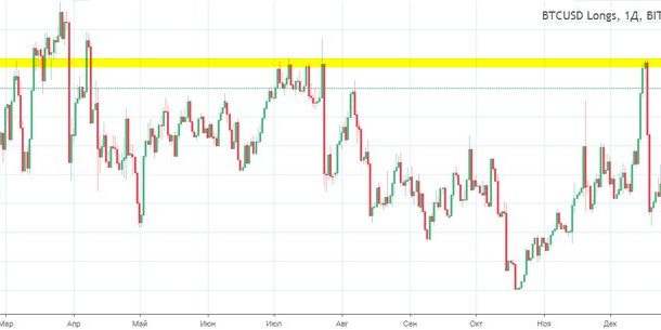 Как видно из размещенного ниже графика Bitcoin long пики покупок пришлись на середину февраля, конец марта, июль, начало августа и середину декабря.