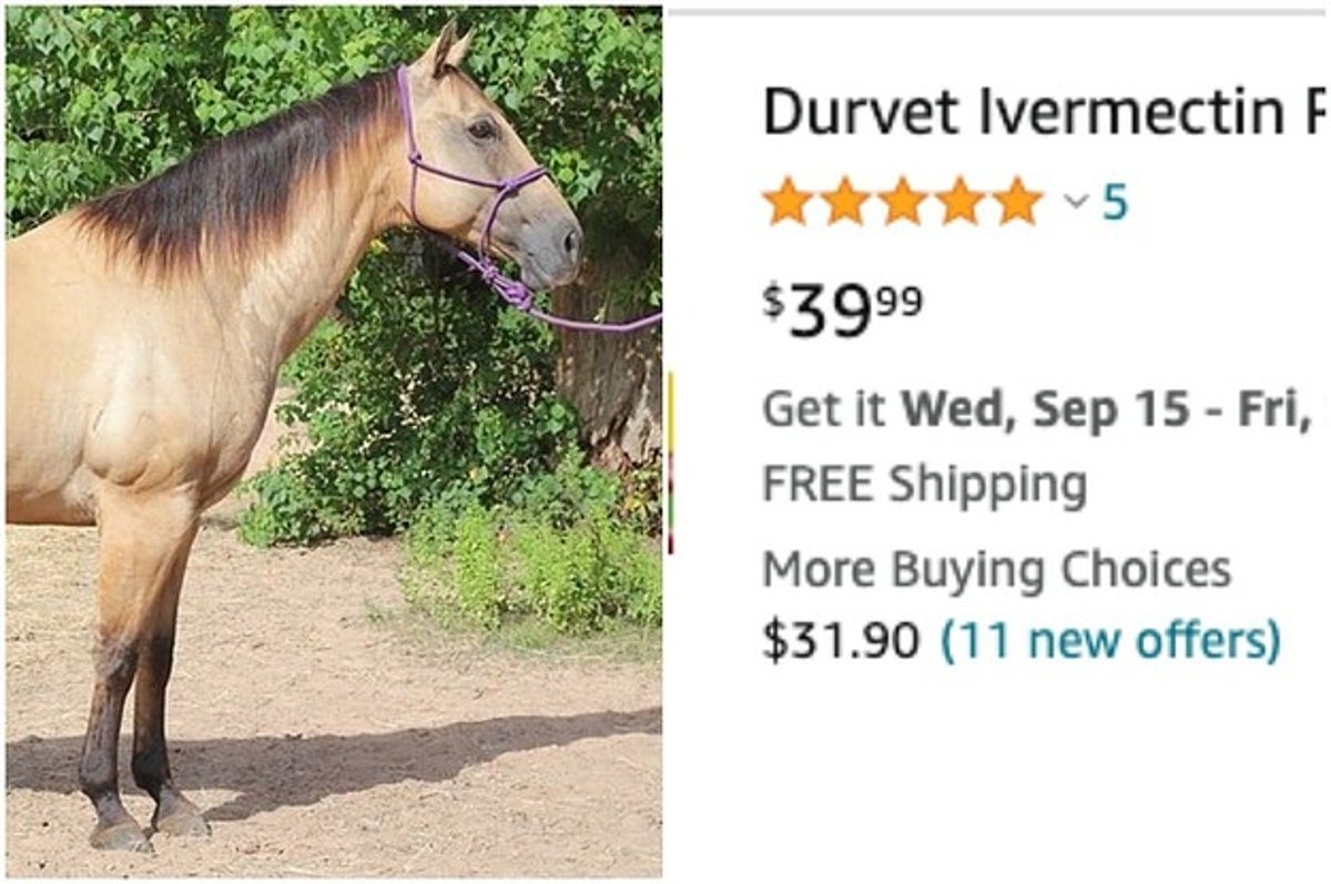 . Дегельминтизация лошади за 7 долларов стоит на Amazon всего 45 долларов благодаря необоснованным заявлениям о том, что это лекарство от COVID. Кэти Нотопулос, корреспондент BuzzFeed News, опубликовано 17 сентября 2021 года в 14:15 по московскому времени. ET