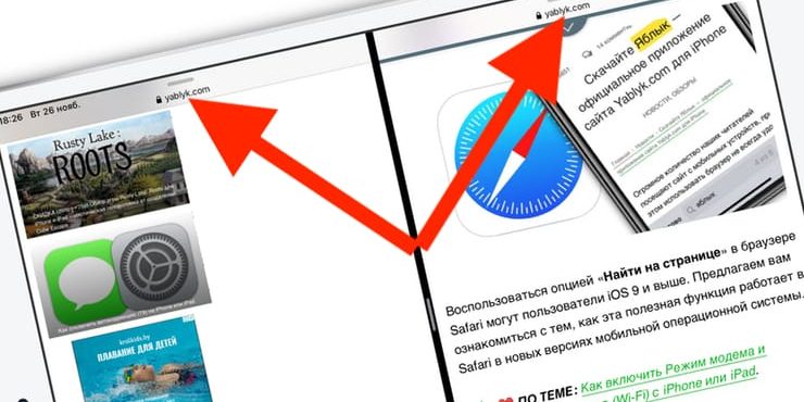 Если вы перетащите объект к краю экрана, то стартует анимация разделения экрана/многозадачности. Открывающееся окно приложения будет зависеть от типа перетаскиваемого элемента. Например, вы можете читать yablyk.com и не покидая сайта перетянув к краю экрана ссылку, открыв в Safari еще одну статью.